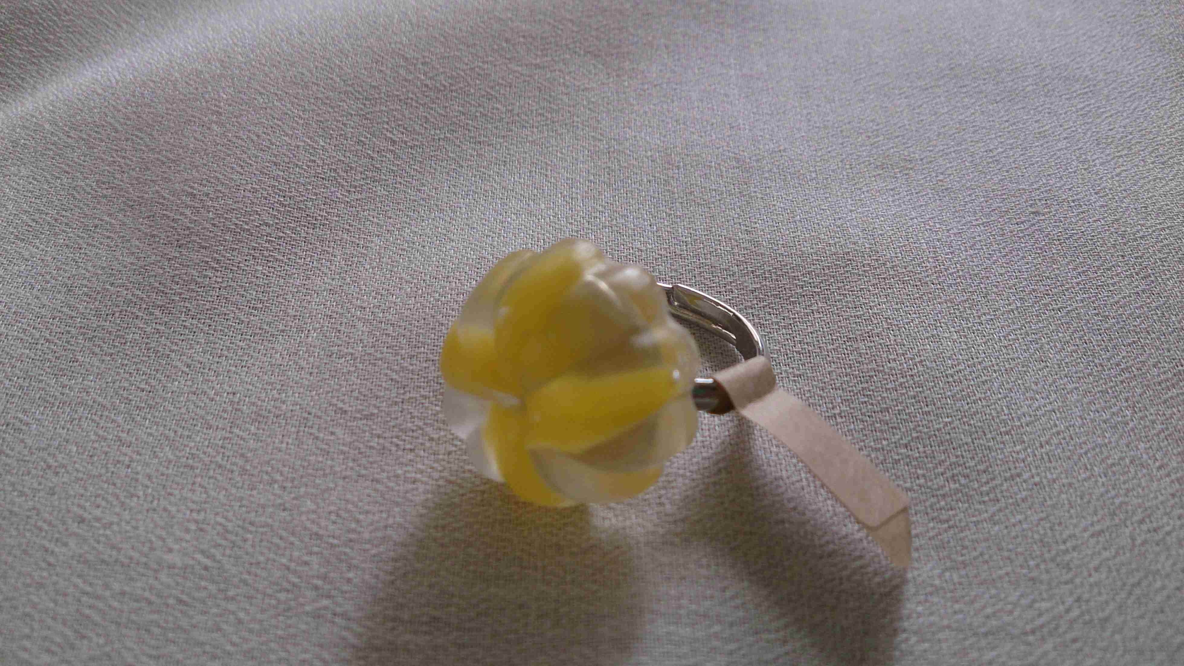 樹脂粘土で作ったレモンの実をレジンでゼリー形に閉じ込め、リングにしました。 涼しげでかわいくておすすめです♡ 1.8cm