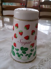 Made in England のいちご柄のシュガーシェーカーです。とてもめずらしい形で存在感があり、置いておくだけでもとてもかわいい商品です。