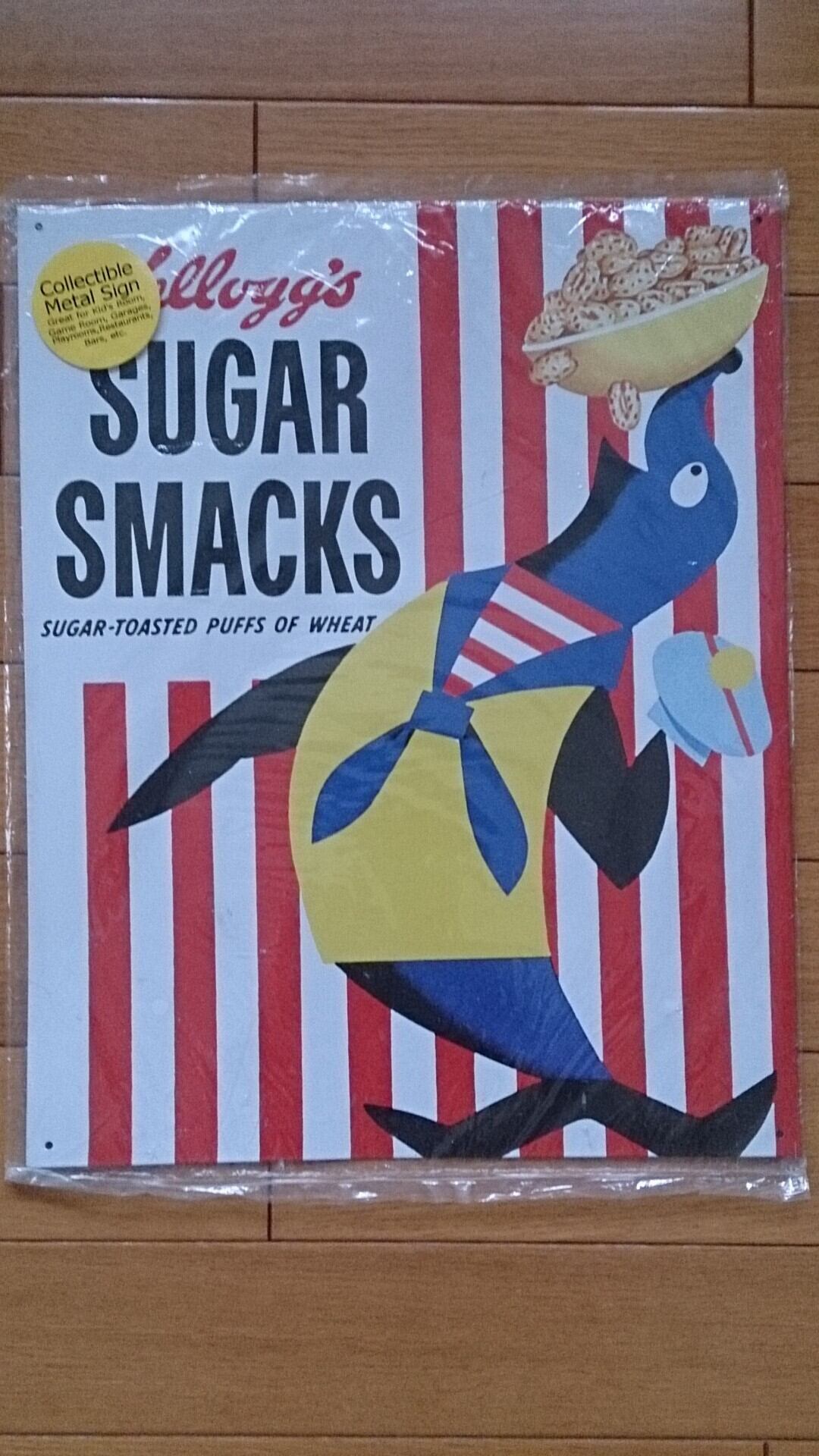 日本でもおなじみのアメリカケロッグ社のアシカ柄のティンサインになります。 インテリアのアクセントにいかがでしょうか。 39㎝×31.5㎝