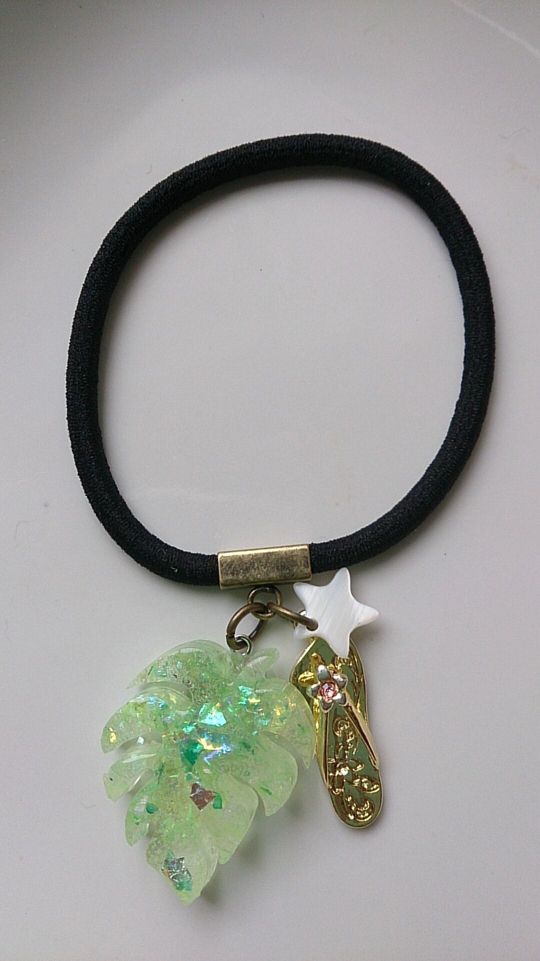 モンステラ型に、ネオンフレークを散りばめレジンで閉じ込めました。