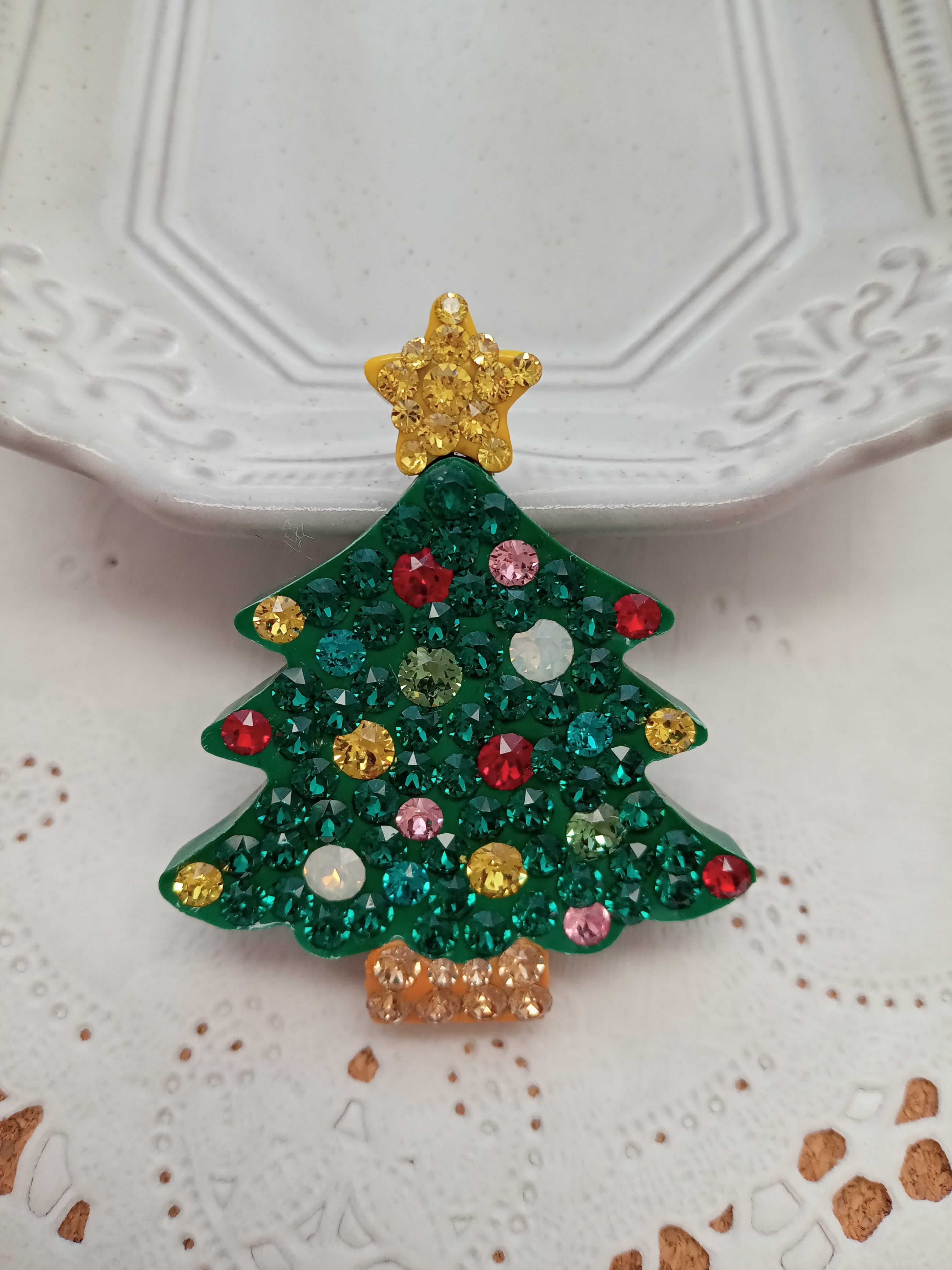 スワロフスキー・クリスタルの石を使用して製作いたしました、クリスマスツリーのブローチになります。