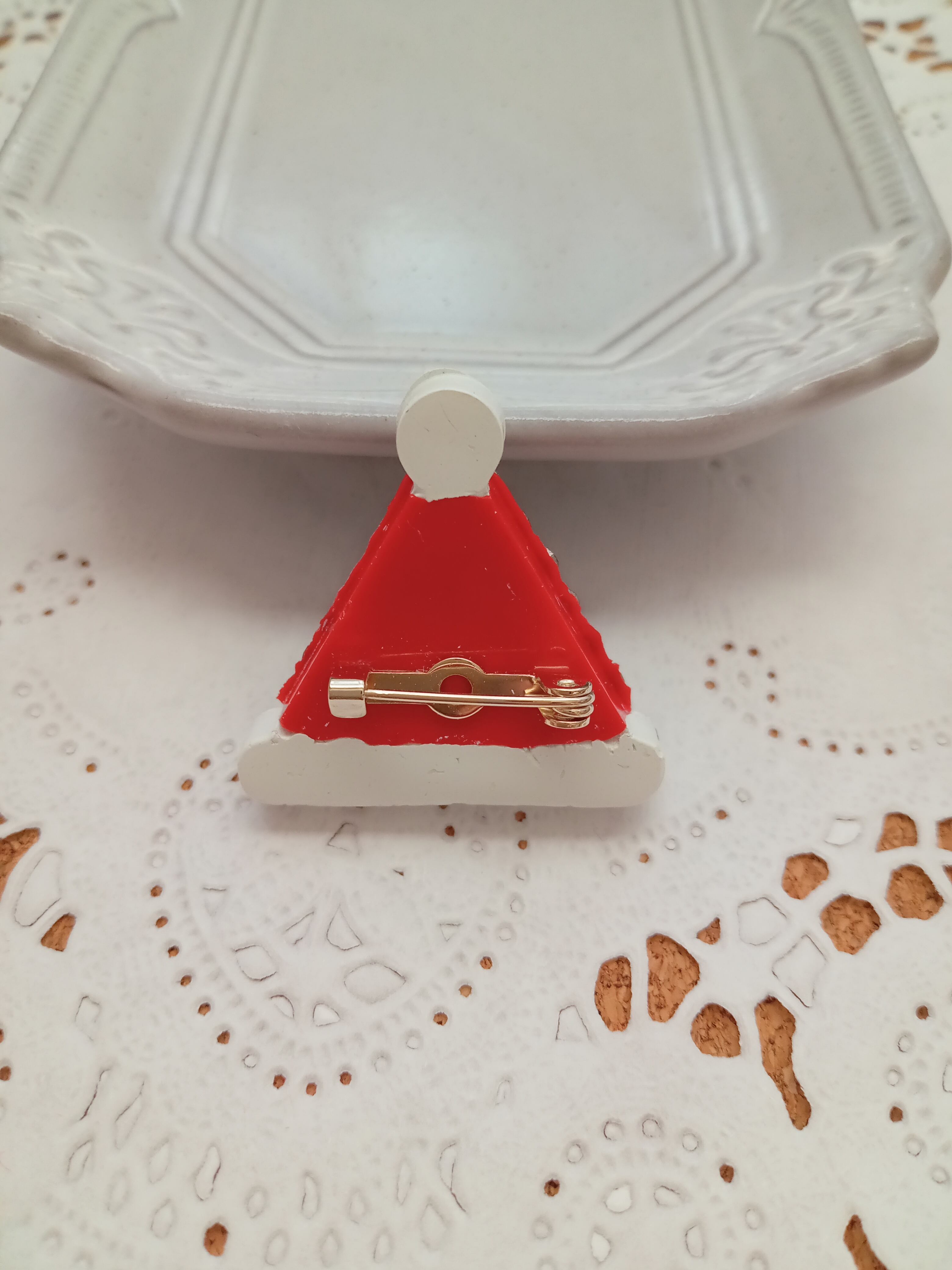スワロフスキー・クリスタルの石を使用して製作いたしました、サンタ帽のブローチになります。