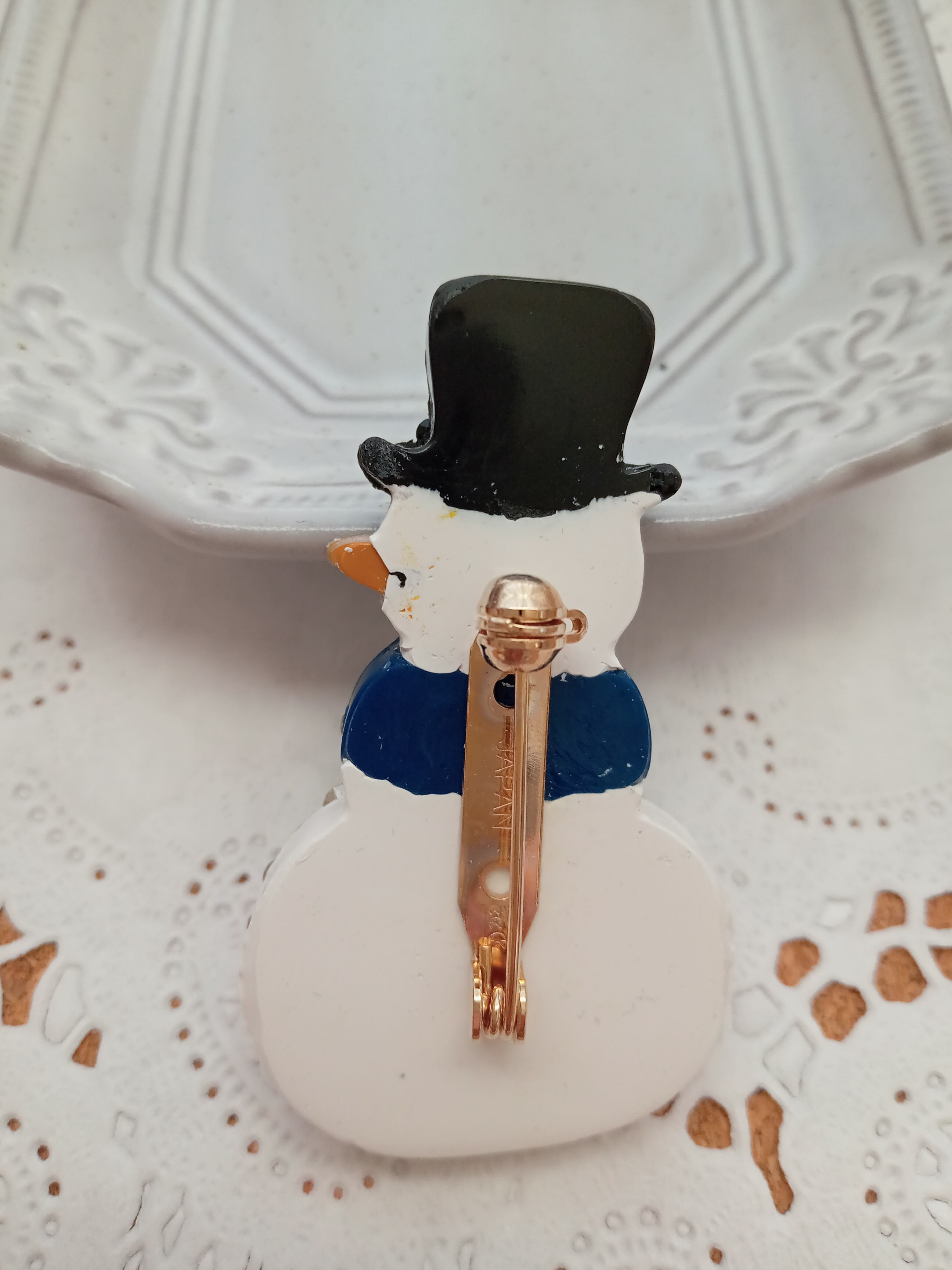スワロフスキー・クリスタルの石を使用して製作いたしました、スノーマンのブローチになります。