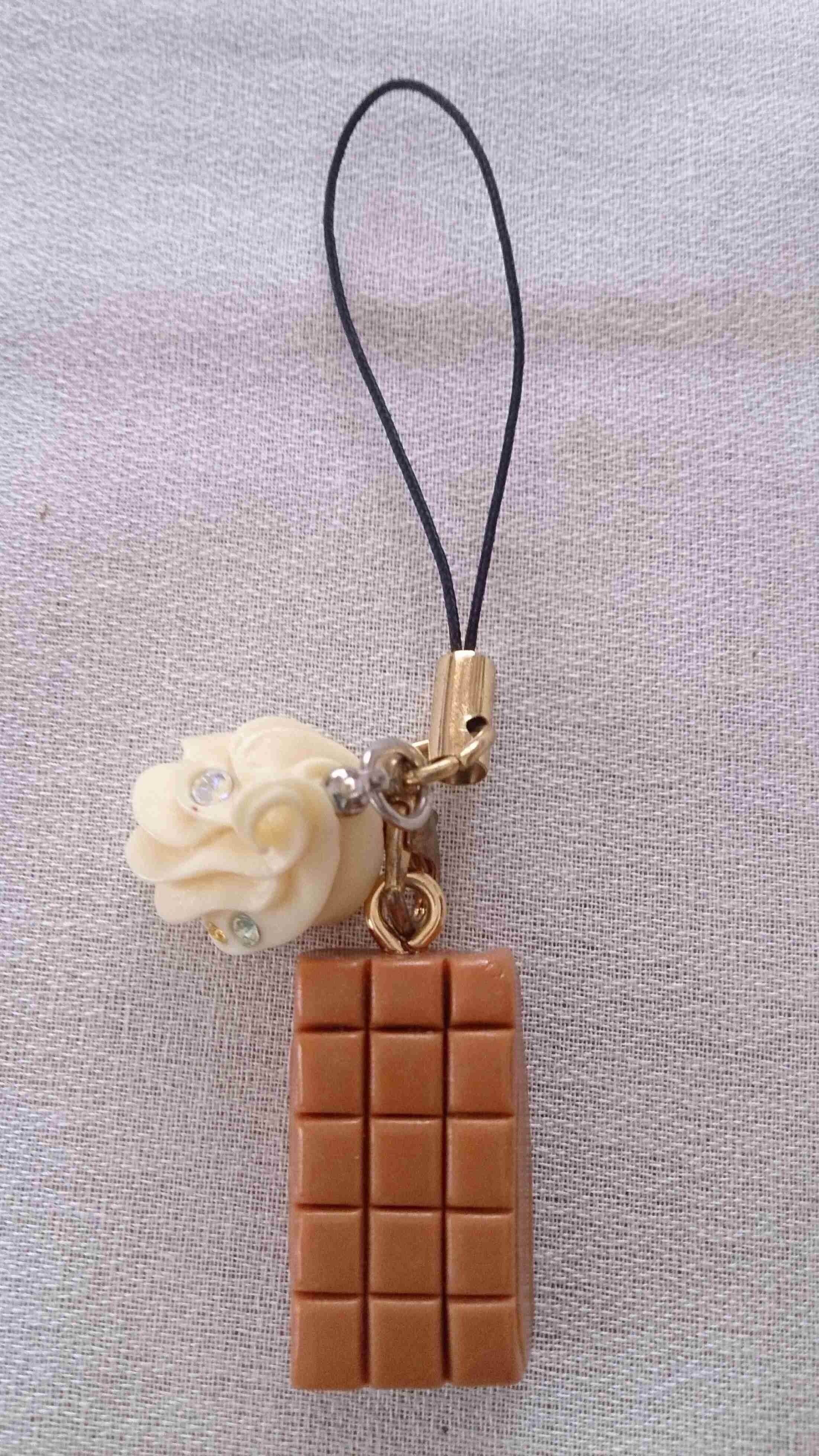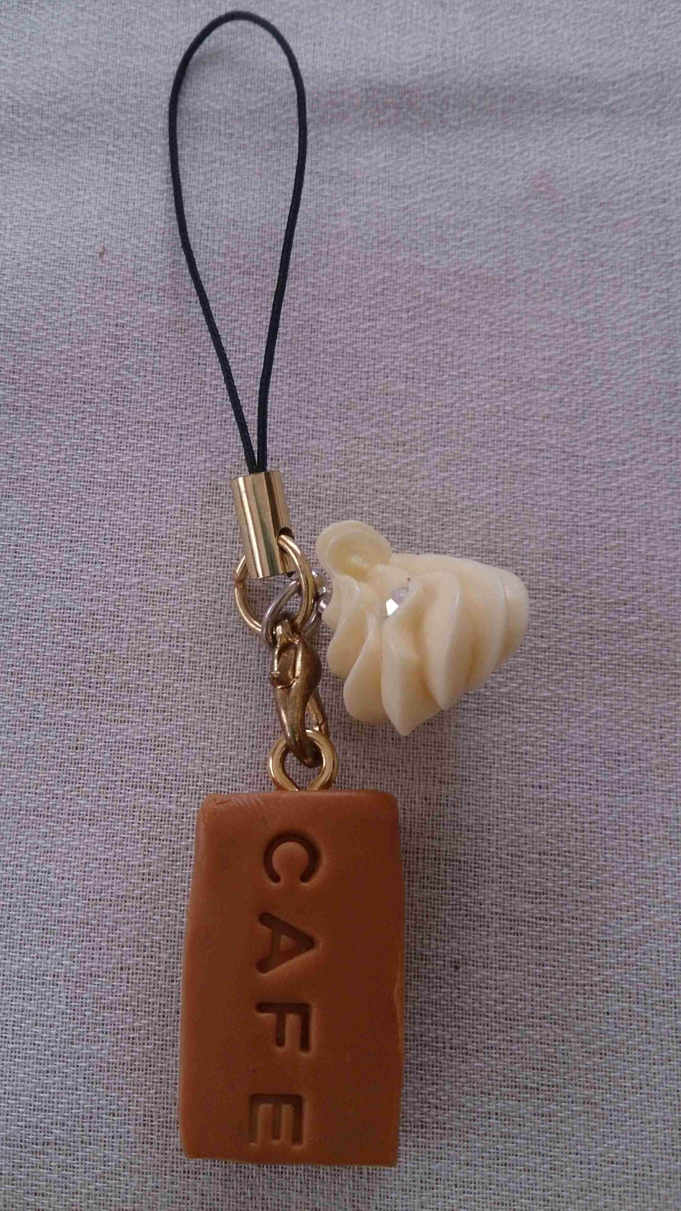 樹脂粘土を使用したキャラメルとホイップのチャームがついたストラップです。