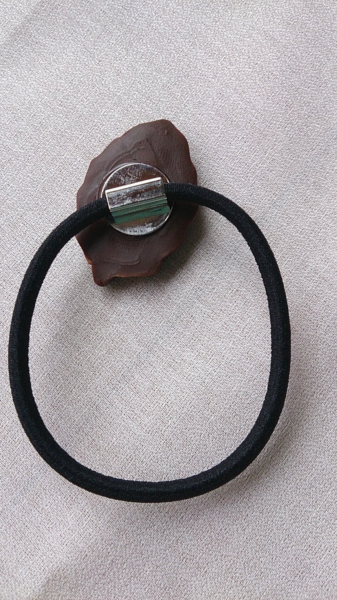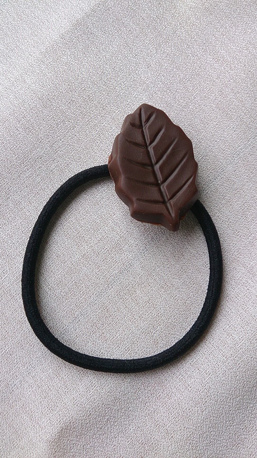 樹脂粘土を使用した木の葉型チョコのヘアゴムです。