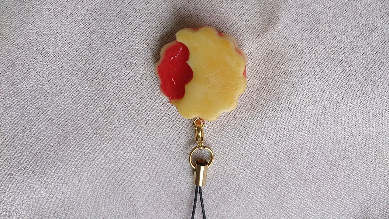樹脂粘土を使用したジャムをサンドしたビスケットのストラップです。 ビスケット2.2cm