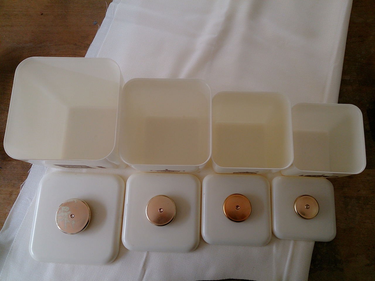 ノスタルジックなかわいい柄のキャニスター4個セットです。