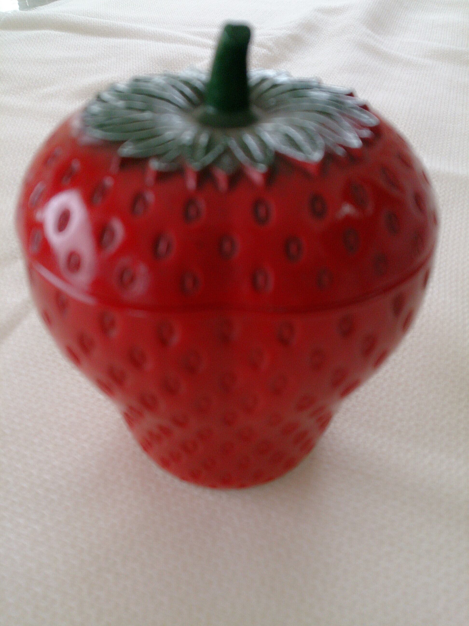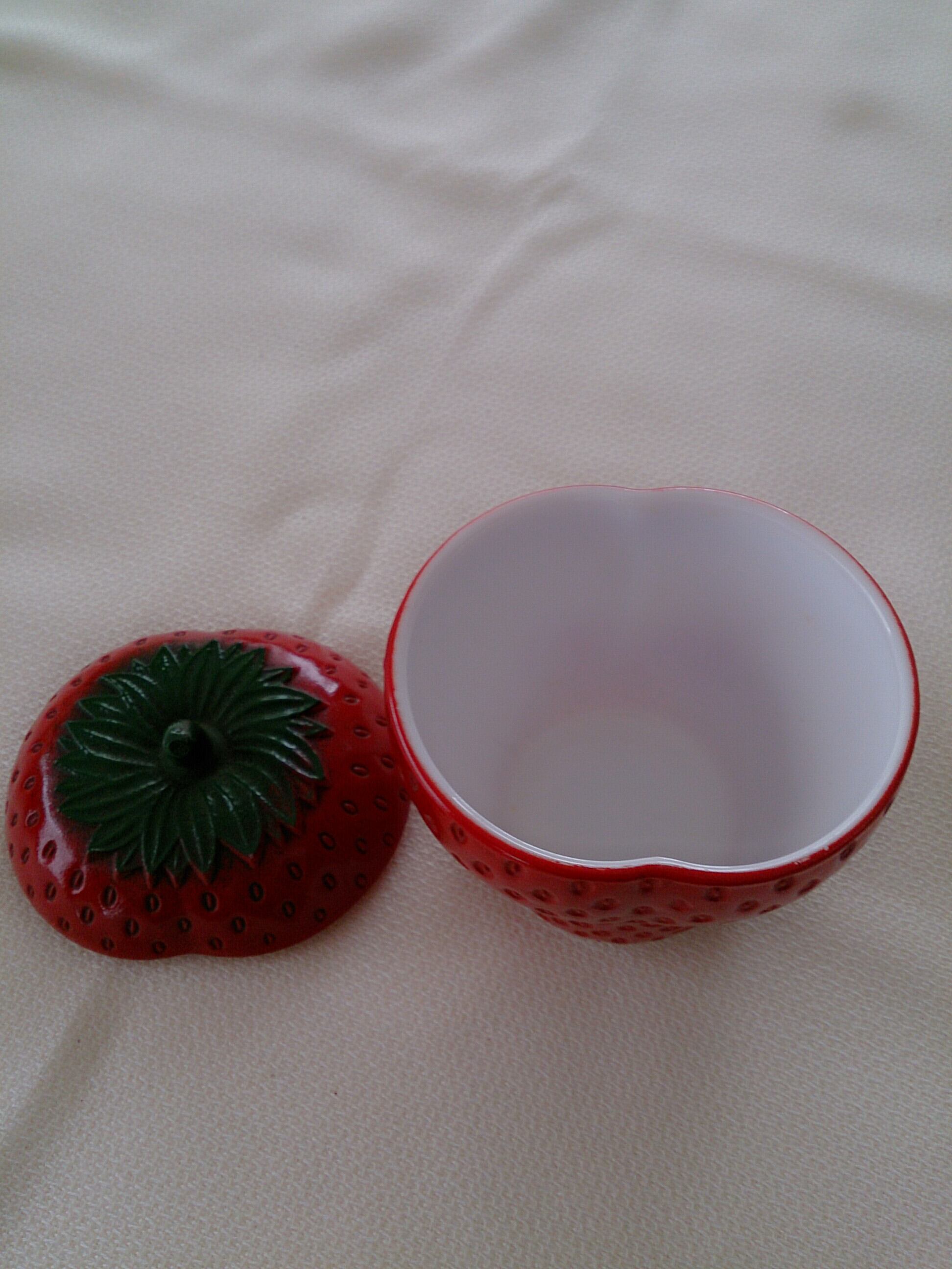 ヘーゼルアトラス社のいちごの形のジャムポットです。