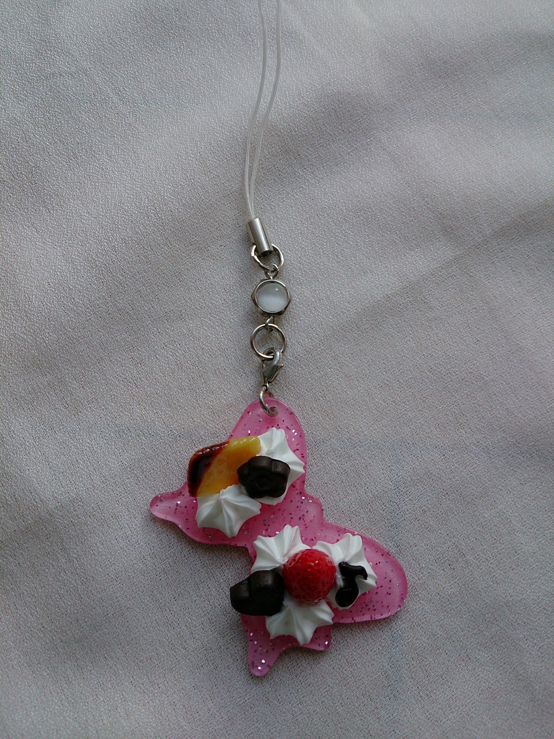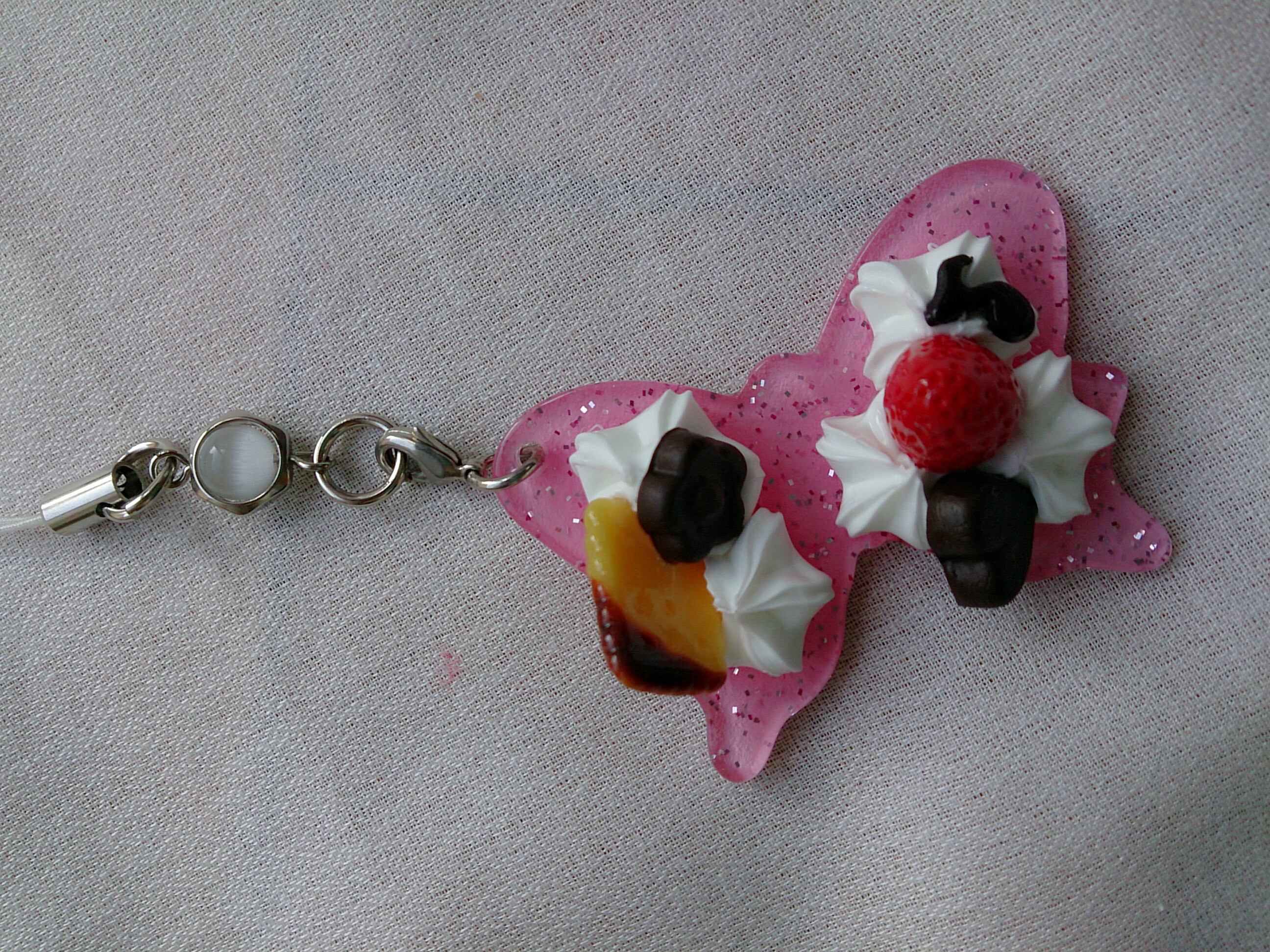 バタフライの形のストラップに、いろいろスイーツをデコしました。かわいくておすすめです☆ 4.7cm×3.4cm