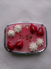 ピルケースに樹脂粘土で作ったスイーツをUVレジンで閉じ込めました。 フタの内側にはミラーが付いていて便利です。 4cm×5.5cm