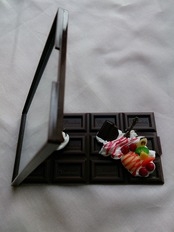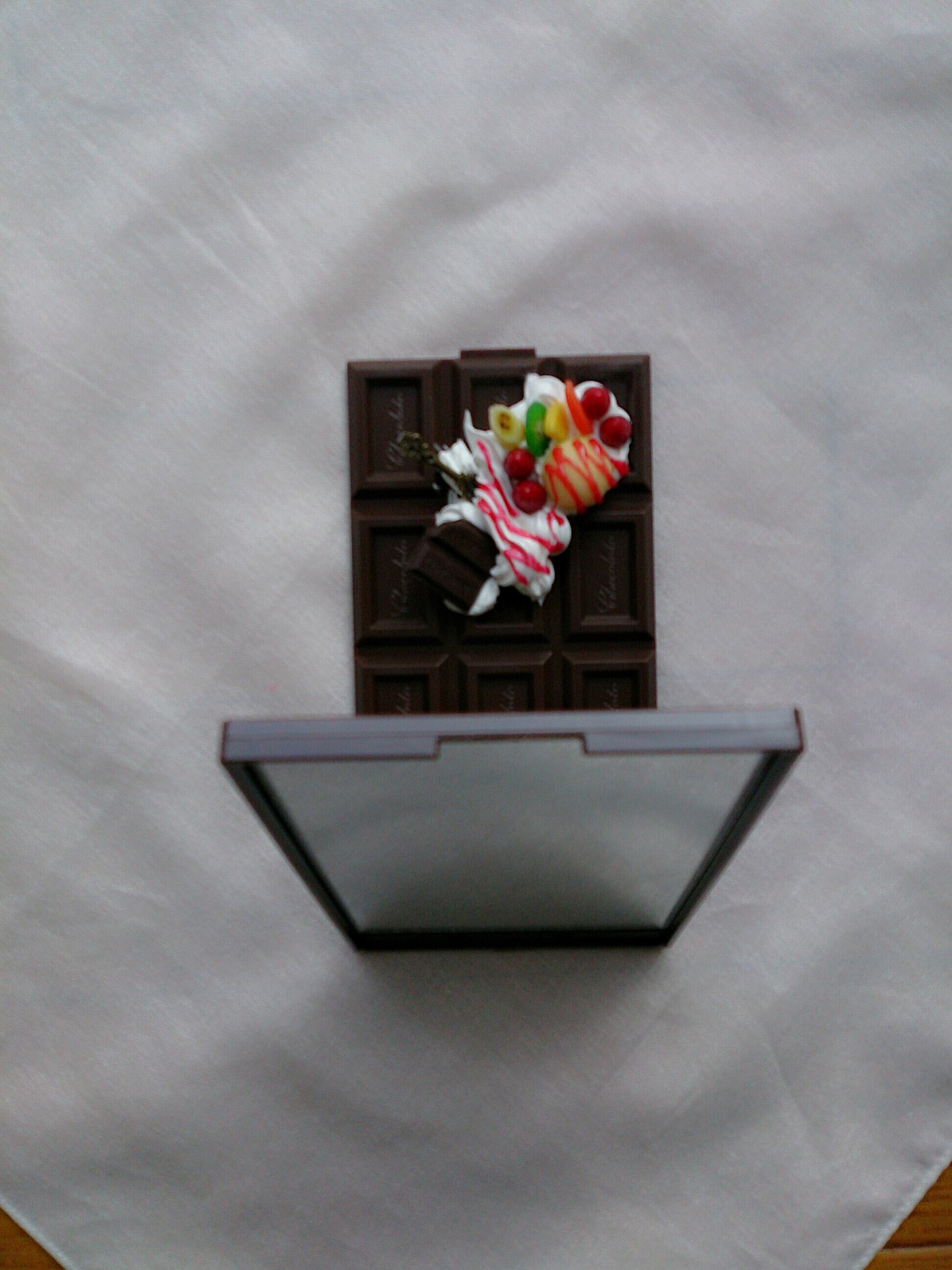 板チョコミラーに樹脂粘土で作ったスイーツをデコしました。