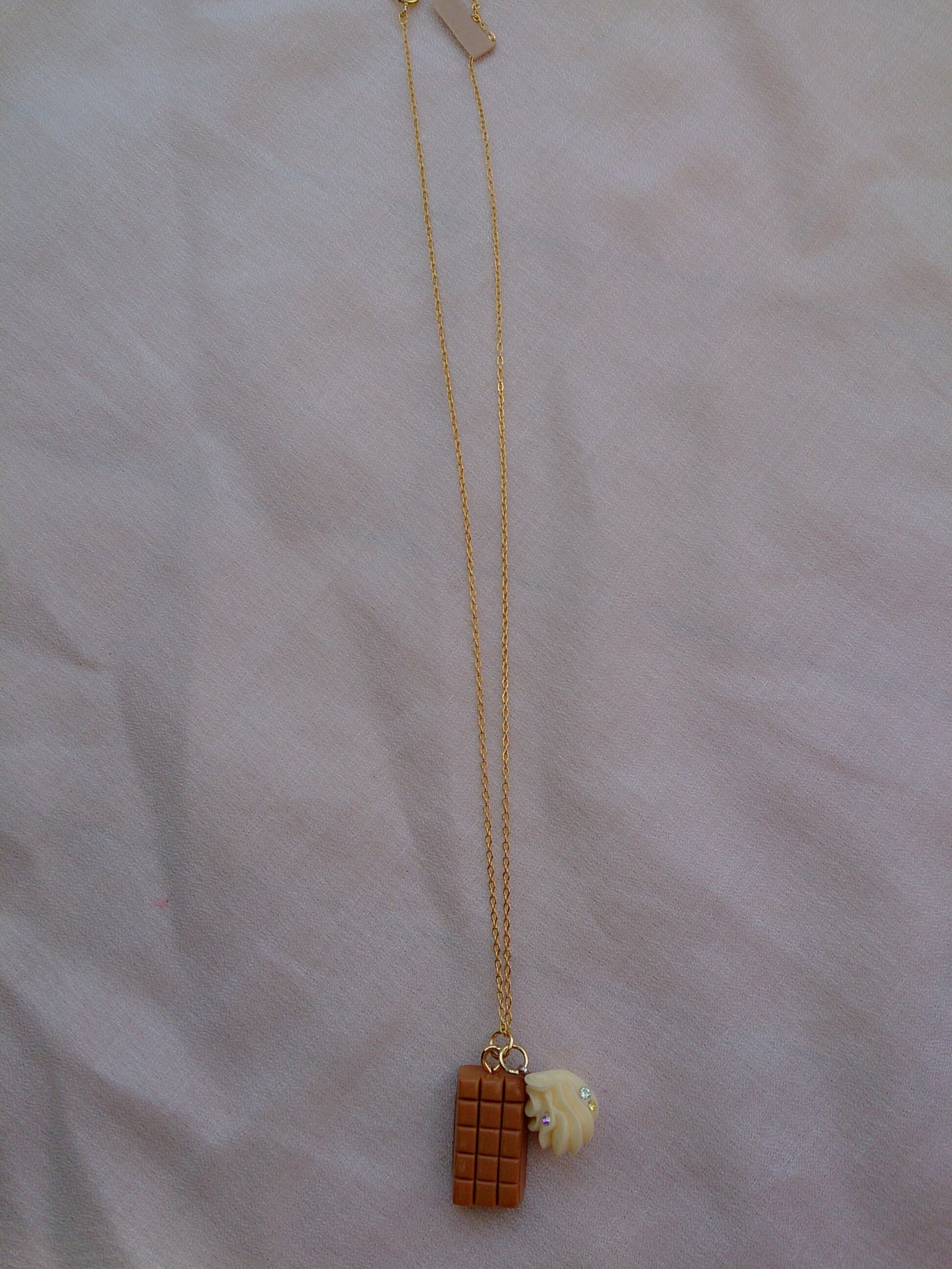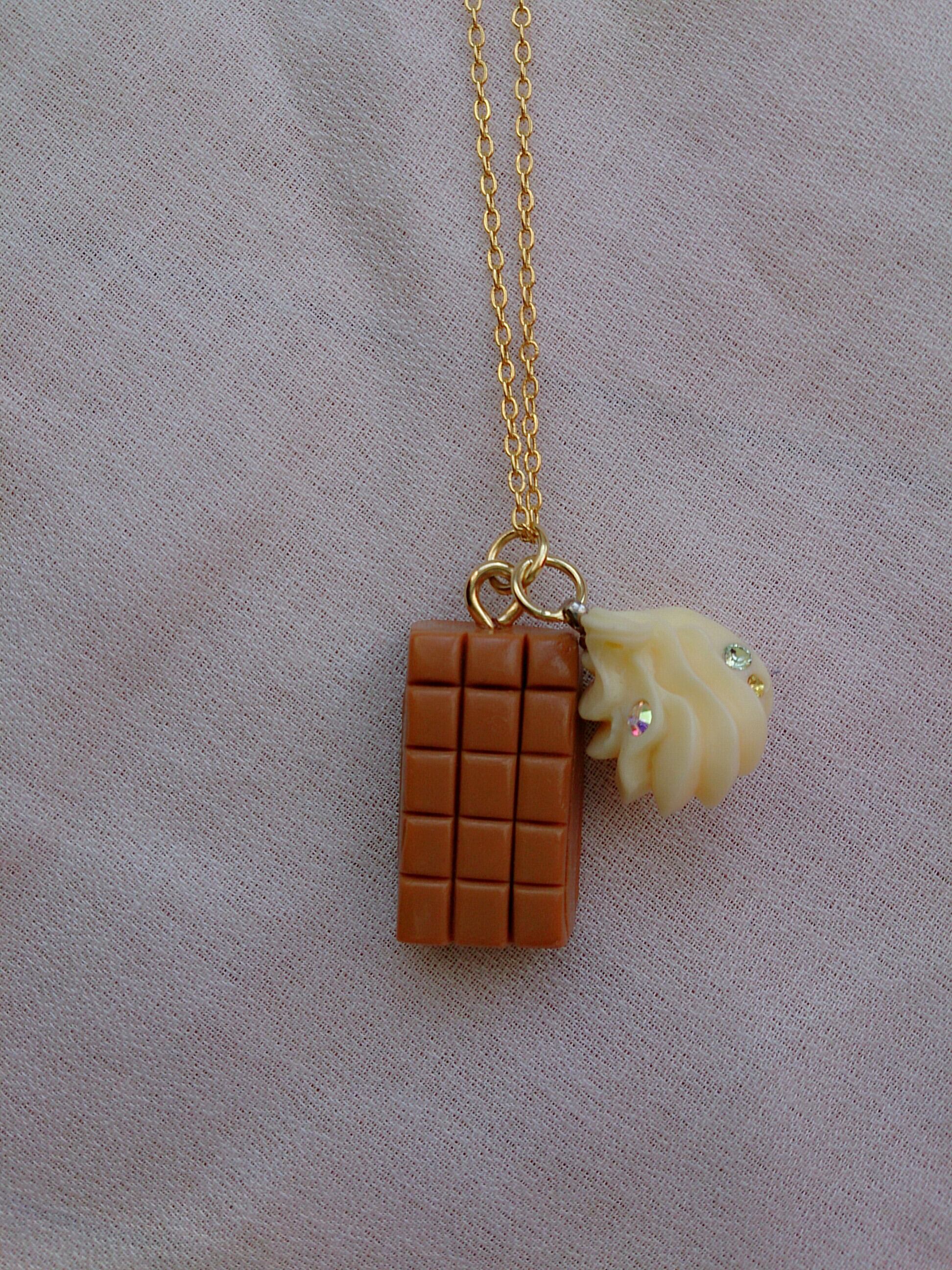 樹脂粘土で作ったキャラメルをネックレスにしました。 ホイップのチャーム付きです。 キャラメル2.4cm チェーン45cm