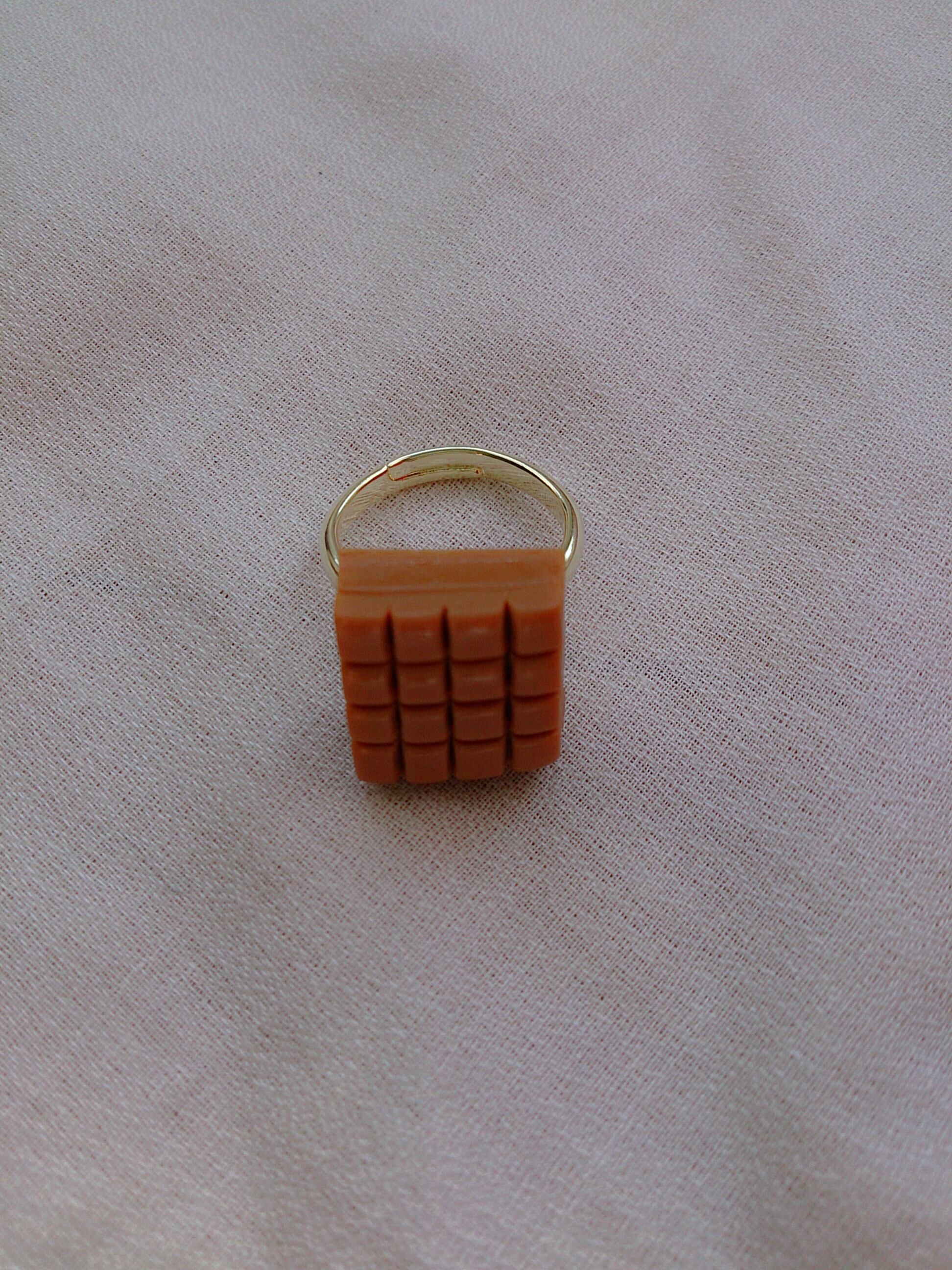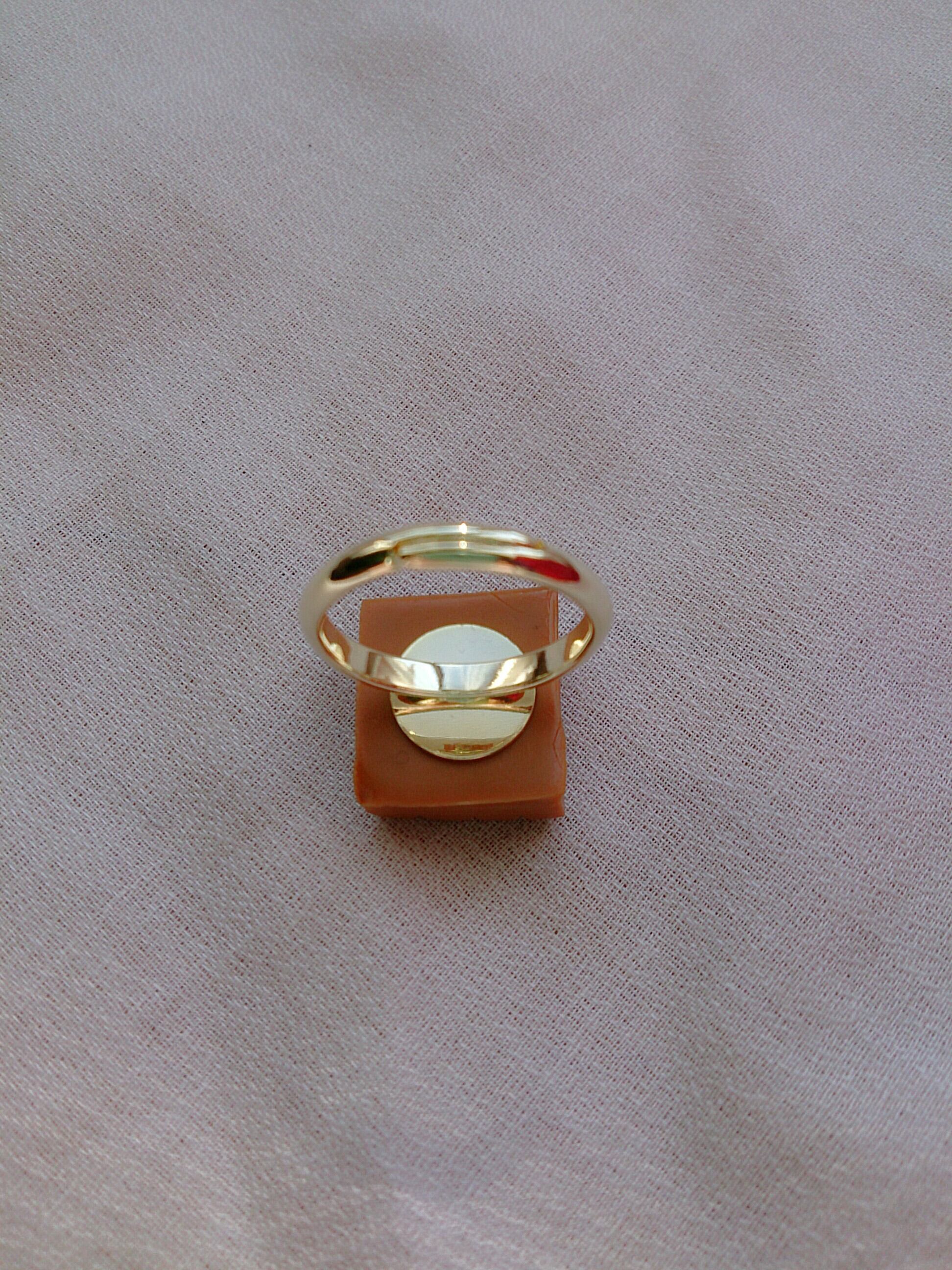 樹脂粘土で作ったキャラメルをリングにしました。 1.4cm リングはフリーサイズです。