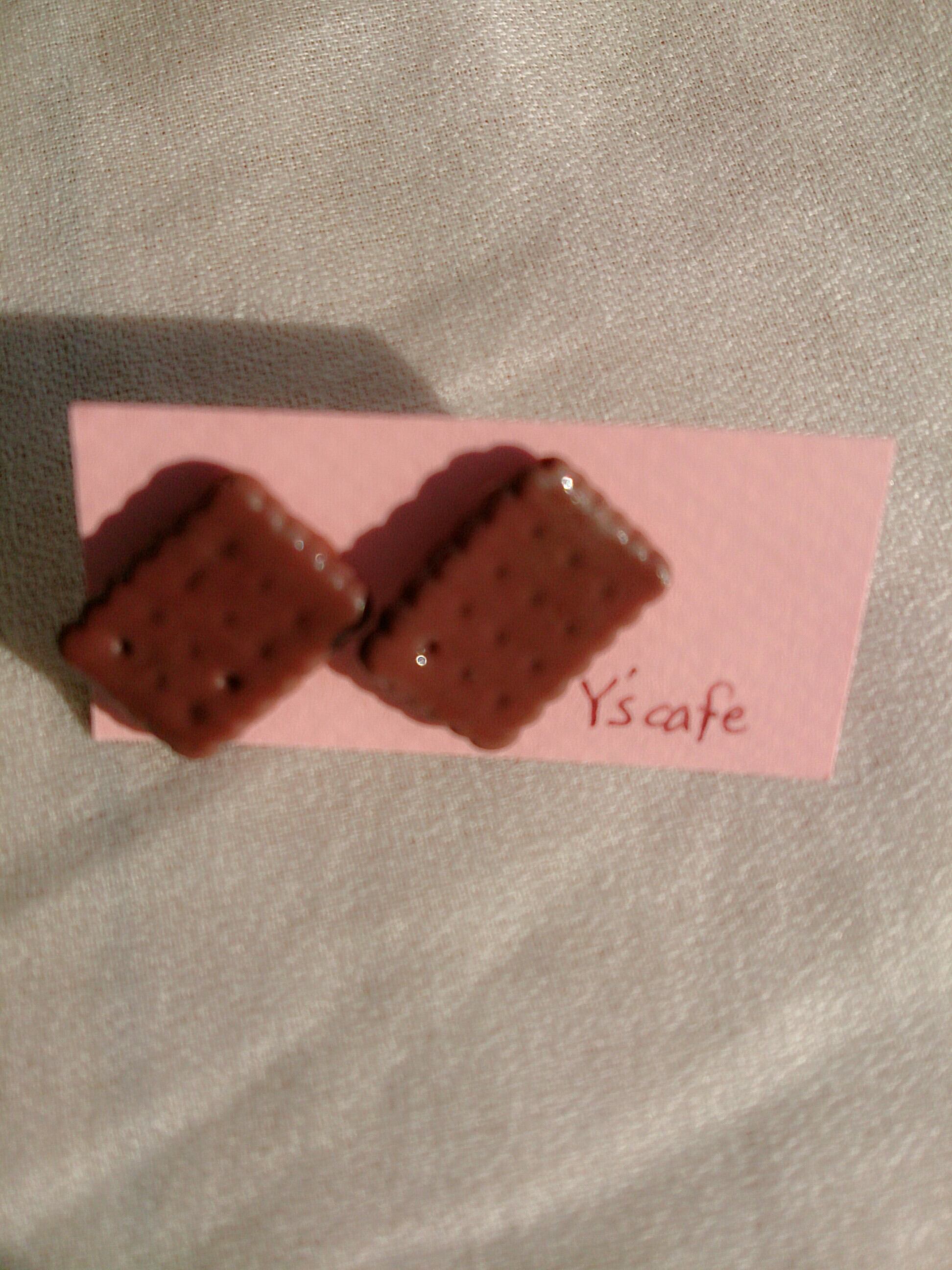 樹脂粘土で作ったミニチュアココアビスケットをピアスにしました。